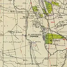 | Etymology: Tell el Khaneizîr, the mound of the swine[2] | |