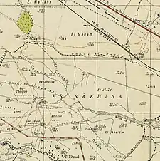 1870s map 1940s map modern map 1940s with modern overlay mapA series of historical maps of the area around Al-Sakhina (click the buttons) | |