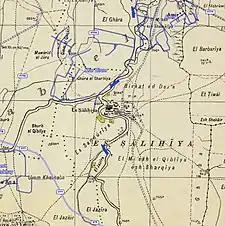 Al-Salihiyya (Arabic: الصالحية) was a Palestinian Arab village populated by people traditionally associated with the Ghawarna, a generic exonym denoting inhabitants of the drainage plains of the Hula Valley.[5] It was depopulated during the 1948 War on May 25, 1948, by the Israeli Palmach. It was located in the Safad Subdistrict, 25 km northeast of Safad, at the intersection of the Jordan River and Wadi Tur'an.