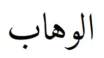 Wahhab (Arabic: ٱلْوَهَّابُ, romanized: al-Wahhāb) is a name of God in Islam, meaning "the Bestower". It is also used as a personal name, as a short form of Abd al-Wahhab - the "Servant of the Bestower".[1]