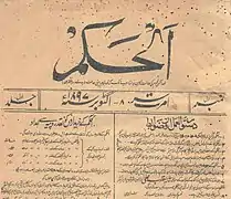 Hazrat Sheikh Yaqub Ali Irfani thus began the weekly Urdu[7] Al Hakam newspaper, with the first issue being published on 8 October 1897. Until the end of 1897, it was printed by Riyaz-e-Hind Press in Amritsar.[8] Thereafter, it moved to the headquarters of the Ahmadiyya Jamaat in Qadian[8] and, with brief intervals, continued publication until July 1943.[9]