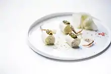 The Executive Chef was originally intended to be Nicola Canuti, but Canuti was replaced before opening by Jocelyn Herland.[3] Designed by Patrick Jouin and his partner Sanjit Manku, the restaurant is inspired by British traditions. The tables feature ceramic vegetables as centrepieces,[4] handmade butter dishes in pink marble, and Porthault linen tablecloths.[5]