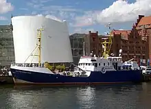 Alan Kurdi,[1] named after the drowned Syrian child of Kurdish origin, Alan Kurdi, is a ship which has been used since 2018 by the humanitarian organization Sea-Eye - under the German flag - and latterly the Italian humanitarian NGO, 'ResQ - People Saving People' for the rescue of migrants in the Mediterranean Sea. Before this, she was an oceanographic vessel operated by the Land of Mecklenburg-Vorpommern, named Professor Albrecht Penck.