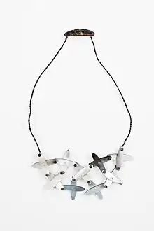 Preston was one of twelve jewellers selected for the landmark 1988 Bone Stone Shell exhibition, developed by the Craft Council of New Zealand for the Ministry of Foreign Affairs, that was shown in Asia, Australia and New Zealand.[5] The exhibition was restaged at the Museum of New Zealand Te Papa Tongarewa in 2013.[5] Preston's work has been shown widely in New Zealand and internationally, including solo exhibitions at the Dowse Art Museum in 2007, the Auckland War Memorial Museum in 2009, and inclusion in the touring exhibition Wunderrūma: New Zealand Jewellery in 2014.[6][7][8]