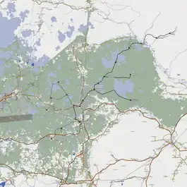 The Alapayevsk narrow-gauge railway (Russian: Алапаевская узкоколейная железная дорога, АУЖД) is a Russian narrow-gauge railway with a track gauge of 750 mm (2 ft 5+1⁄2 in). The Head Office of the narrow-gauge railway is located in Alapayevsk, Sverdlovsk Oblast. 57.84731°N 61.67245°E