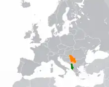 ![]() Location of Albania (green), Serbia (orange) and Kosovo (light orange) | |