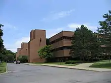 The decline of exporting from the United States contributed to a general decline as well. Watervliet, Cohoes, and especially Troy lost a competitive edge that came with being at the confluence of the Hudson and Mohawk rivers: the location no longer meant better access to markets, waterfalls no longer made the cheapest power, and cheap labor in the southern and western parts of the nation became important to companies.[34] General Electric moved part of their headquarters to Connecticut from Schenectady in the mid-1980s.[35] Within the Capital District focus shifted to the suburbs. The suburbs had large open spaces for office parks and homes while the cities were constrained in available land. Albany International, with their headquarters and factory straddling the Menands and Albany border, built a new headquarters in 1987 in suburban East Greenbush,[36] as did Garden Way, headquartered in Troy.[37] The region's first technology park was built in the 1980s in North Greenbush by Rensselaer Polytechnic Institute (RPI).[38]