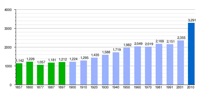 | Vertical bar chart demographic of Albelda de Iregua between 1857 and 2010 |