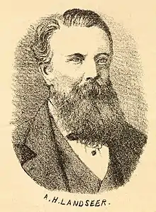 Albert Landseer was born in London in 1829 the only son of Henry Landseer and his wife Lucy. He was a cousin of the noted animal painter Sir Edwin Landseer, who sculpted London's famed Trafalgar Square lions.[1] He studied sculpture under a Mr Johnson, but abandoned art and migrated to South Australia in 1848.[2]