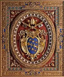 In 1598, during Clement VIII's pontificate, Ferrara was devolved to the Papal States, meaning the d'Este court moved to Modena. The famous camerini d'alabastro[2] of Alfonso I d'Este were therefore dismantled, with the works stealthily requisitioned by cardinal Pietro Aldobrandini, papal legate - on this occasion he acquired the four bacchanal scenes (one being Bellini's The Feast of the Gods and the rest Titian's Bacchus and Ariadne, The Bacchanal of the Andrians and The Worship of Venus.[3]