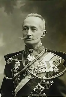 Born into an aristocratic military family, Brusilov trained as a cavalry officer, but by 1914 had realized that cavalry was obsolete against modern weapons of warfare such as machine gun and artillery. Historians portray him as the only First World War Russian general capable of winning major battles; his offensive strategy helped eliminate the Austro-Hungarian Empire as an independent fighting force.[1] However, his victories resulted in heavy casualties that seriously weakened the Russian army, which was unable to replace its losses.[2]