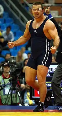 Aleksey Krupnyakov (born May 28, 1978) is a male freestyle wrestler from Kyrgyzstan. He is a two-time Olympyian, competing in both the 2004 Summer Olympics and 2008 Summer Olympics. Krupnyakov originally won his 2nd bronze medal at the Wrestling World Championships in 2010, but was stripped after testing positive for steroids. During his 2-year suspension he competed in MMA, compiling a record of 5-0, finishing all opponents in the 1st round. He returned to wrestling in 2013.