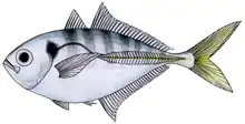 ![]() | Alepes djedaba (Forsskål, 1775) | Shrimp scad | Tropical and subtropical western Indian Ocean and areas of the eastern Pacific Ocean, ranging from South Africa in the west to Hawaii in the east, including Japan and Australia to the north and south |
