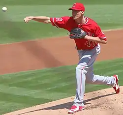![]() Meyer pitching for the Los Angeles Angels in 2016 | |