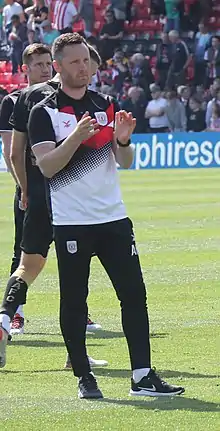 Some five years later, as Crewe struggled to avoid relegation from EFL League One, Artell reshuffled his management team, appointing Morris as assistant manager, with Lunt becoming player development manager.[6] After the club was relegated with four games still to play, Crewe parted company with Artell on 11 April 2022, and Morris was appointed interim manager to the end of the 2021–22 season, with Lee Bell as his assistant.[7]