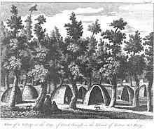 On 20 January, Banks visited an Ona village, very likely together with Buchan, whose drawing of An Indian Town at Terra del Fuego (engraved as View of a Village in the Bay of Good Success, in the Island of Terra del Fuego) illustrates Banks' description:[20]