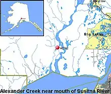 Alexander Creek, also known as Taguntna Creek,[1] is a 35 miles (56 km) long stream from Alexander Lake[1] which merges with the big Susitna River[1] near the village of Alexander Creek, Alaska also known as Alexander, Alaska,[1] an Alaska Native and Alaska Bush community, in Matanuska-Susitna Borough, Alaska.