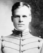 After graduating from the Military Academy, Gillespie served in the United States Army until December 1946, attaining the rank of brigadier general.[2] In 1911, he was recalled to the Military Academy and served as an assistant coach on the football team; in that capacity, he served as the position coach for a first-year end by the name of Dwight Eisenhower.[5] He was stationed in the Philippines at the outbreak of World War I and returned to the United States for wartime service at Camp Grant before being sent to France. After the war, he served as a military attache in Tokyo and then spent four years as an ordnance and gunnery instructor at West Point.[1] Gillespie graduated from the Command and General Staff School in 1924 and the United States Army War College in 1929.[6] In the mid-1930s, while in command of the Rock Island Arsenal, he supervised the development of the light tank. In the late 1930s, while in command of the Watervliet Arsenal, he helped develop the Army's eight-inch cannon.[5] For his service as chief of the industrial section of the Ordnance Department during World War II, Gillespie received a Distinguished Service Medal and a Legion of Merit award.[2] He died in January 1956 at the Walter Reed Army Medical Center in Washington, D.C.[2] Gillespie was buried at Arlington National Cemetery.[7]