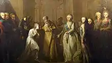 On 9 October 1793, when Alexander was still 15 years old, he married 14-year-old Princess Louise of Baden, who took the name Elizabeth Alexeievna.[15] His grandmother was the one who presided over his marriage to the young princess.[16] Until his grandmother's death, he was constantly walking the line of allegiance between his grandmother and his father. His steward Nikolai Saltykov helped him navigate the political landscape, engendering dislike for his grandmother and dread in dealing with his father.