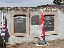 He had wanted to continue westward out of a desire to reach the open ocean, but was stopped by the hostility of the Heiltsuk people.[18] Hemmed in by Heiltsuk war canoes, he wrote a message on a rock near the water's edge of Dean Channel, using a reddish paint made of vermilion and bear grease, and turned back east. The inscription read: "Alex MacKenzie / from Canada / by land / 22d July 1793" (at the time the name Canada was an informal term for the former French territory in what is now southern Quebec and Ontario).[19]: 418 The words were later inscribed permanently by surveyors. The site is now Sir Alexander Mackenzie Provincial Park and is designated First Crossing of North America National Historic Site.[20] In 2016, Mackenzie was named a National Historic Person.[21]