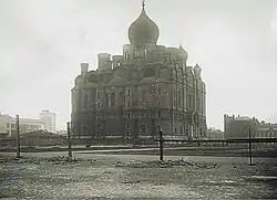After the Russian Revolution, the huge 17-domed church capable of accommodating more than 4,000 persons stood unfinished, while the Soviets debated whether to have it reconstructed into a crematory or a radio centre.[2] It was the largest church in Moscow after the Cathedral of Christ the Saviour. The dilapidated concrete shell was eventually torn down in 1952. A Pioneers Palace was raised on the old foundation in 1960.[3]