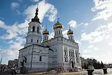 The Alexander Nevsky Cathedral (Russian: Собор Александра Невского) is a Russian Orthodox cathedral in the Diocese of Tver, located on Station Square in the intersection of Tchaikovsky Prospekt and Komintern Prospekt in Tver, Russia. Built between 2010 and 2015, it stands on the site of the former Church of Alexander Nevsky, built between 1891 and 1893, closed in 1929, and demolished in 1982.