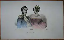 In February 1814, Grand Duke Nicholas Pavlovich, future Tsar of Russia, and his brother Grand Duke Michael Pavlovich, visited Berlin.[4][6] Arrangements were made between the two dynasties for Nicholas to marry Charlotte, then fifteen years old, to strengthen the alliance between Russia and Prussia.[7]