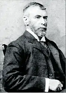 Alfred George Jones (Chinese: 仲鈞安; pinyin: Zhòng Jūnān, 23 July 1846 - 17 July 1905) was an Irish baptist missionary to China. Jones had his own business in his native town of New Ross, Ireland, but left it in the hands of a manager in order to go on his mission to China.[1] He attended Lancashire Independent College, a dissenting academy from 1874 to 1876 and arrived in Yantai, Shandong in 1876.[2] In the following year, he went to Qingzhou to assist Timothy Richard by keeping the accounts for an ongoing relief effort for the victims of the Northern Chinese Famine of 1876–1879.[1] He continued to reside in Qingzhou with the exception of the period from 1889 to 1896, during which he lived in Zouping. He died when a temple building on Taishan, Tai'an in which he was sleeping collapsed during a storm.[2]