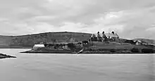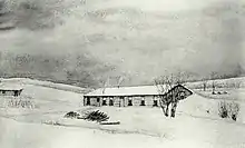 In leading his regiment across the Northwest Territories, Colonel Wyndham came to admire the wild beauty of Alberta and recognised its agricultural potential. He decided to return west in 1886 and was given a North-West Rebellion script on one quarter, and another quarter of homestead land, at a prime site by the Bow river near Carseland to the south east of Calgary, a combined total of 320 acres. His wife and children followed in 1887, Mrs Wyndham recording in her diary that the family moved into their cottonwood log house at a temperature of 20 °F (−7 °C) below zero.[4] Colonel Wyndham soon became one of the most prominent ranchers in Alberta. He named his ranch Dinton, after his family's ancestral home and estate in Wiltshire, and soon the whole district became known as Dinton, acquiring a post office and an Anglican church dedicated to St Thomas which stands to this day.[5]