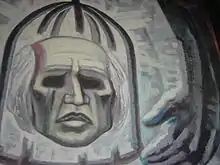 At first the building held, but soon the insurgents surrounded the building and began throwing rocks. Riaño died in this attack. His death caused "division and discord among the defenders of the Grain Exchange."[6] The insurgents decided to burn down the eastern door to be able to enter and attack those that were inside. According to a popular tradition the man chosen to perform this task was Juan José Martínez "El Pípila", an extraordinarily strong local miner. He is said to have tied a large flat stone to his back to protect himself from the bullet and rock storm expected once he entered.[7] He poured petroleum on the door and lit it using a torch. When the door burnt down, the attackers stormed into the Grain Exchange, led by Martínez. Everyone inside the Grain Exchange was killed[7] and the building sacked. Reportedly, blood stains from the attack could still be seen on the pillars of the building and the main staircase as late as 1906.[9] At the end of the day, hundreds of bodies were buried, and the whole city of Guanajuato pillaged. This event would encourage Hidalgo not to attack Mexico City, afraid his followers would repeat the massacres and looting of Guanajuato.