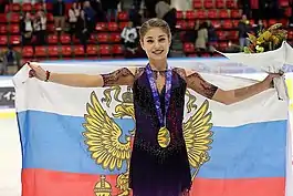 Alena Sergeyevna Kostornaia (Russian: Алёна Сергеевна Косторная; her first name is properly pronounced Alyona as the Cyrillic ё is pronounced yo;[1] born 24 August 2003) is a Russian figure skater. She is the 2020 European champion, the 2019–20 Grand Prix Final champion, a six-time Grand Prix medalist (including gold at the 2019 Internationaux de France and the 2019 NHK Trophy), and the 2019 CS Finlandia Trophy champion. Competing domestically, she is a three-time Russian senior national medalist (silver 2020, bronze 2018 and 2019). She previously held the world record for the highest senior short program score in women's skating.
