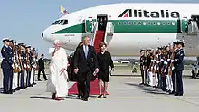 Beginning with Pope Paul VI in 1964 until the airline's closure in 2021, the Pope flew most often on a chartered Alitalia jet when making pastoral and state visits to a country.[13][14] The Pope's flight was often nicknamed "Shepherd One" by the press, while the actual callsign was "Volo Papale" (papal flight, in Italian) followed by a serial number.[15]