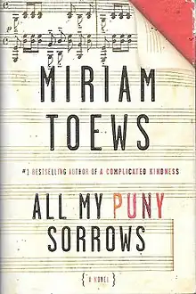 All My Puny Sorrows is the sixth novel by Canadian writer Miriam Toews. The novel won the 2014 Rogers Writers' Trust Fiction Prize, and was shortlisted for the 2014 Scotiabank Giller Prize, the 2015 Folio Prize for Literature, and the 2015 Wellcome Book Prize. Toews has said that the novel draws heavily on the events leading up to the 2010 suicide of her sister, Marjorie.[1]