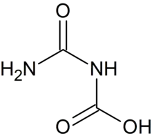 The anionicconjugate base, H2NC(O)NHCO2−, is called allophanate. Salt of this anion have been characterized by X-ray crystallography.[2][3] The anion allophonate is the substrate for the enzyme allophanate hydrolase.