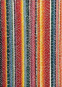 Her watercolor and oil paintings incorporated the use of (sometimes overlapping) colorful rectangles. She continued to use this technique, in works which explored colors found in trees, flowers, gardens, and other natural imagery.[3] Her painting Evening Glow was inspired in part by Thomas's interest in the colors of natural world: "The holly tree outside her living room intrigued Thomas with designs formed by its leaves against the window panes, and with patterns of light and shade cast on the floor and walls inside her home."[3] She called her paintings 'Alma's Stripes,' as the overlapping shapes of paint created elongated rectangles. Later works were inspired by space exploration and the cosmos. The title of her painting Mars Dust (1972) alluded to news stories of a dust storm on Mars.[2]: 33 .