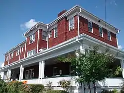 Aloah Hotel, also known as The Hendersonville Inn, Carson Hotel, and the Inn on Church, is a historic hotel building located at Hendersonville, Henderson County, North Carolina. It was built in 1919, and is a three-story, rectangular brick building with Classical Revival style design elements. The front facade features a hipped roof porch with paired square posts and a plain wooden balustrade.[2]