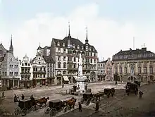 - Impressively, the town hall with its balanced façade closes the market square. (...) Since the three-storey building occupies the entire narrow side of the square, its effect is further enhanced.[3]