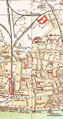 Immediately after the completion of the main line, the construction started on a link between the low-lying banks of the Elbe and Altona station, which passed through the Altona Harbour Tunnel, known as the Schellfischtunnel (Haddock Tunnel). This line, which was opened in 1845, involved the haulage of wagons by cable up a 210-metre-long steep slope to overcome a height difference of 30 metres. The port railway in Kiel was opened to traffic on 1 September 1844.