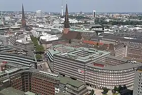 ![]() | Kontorhaus District Kontorhausviertel | Office district, erected in the 1920s and 1930s as the first of its kind in Europe; located between the Speicherstadt's end at Zollkanal and Steinstraße. On the tentative list as an UNESCO World Heritage Site.[4][5] |