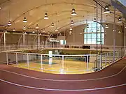 43°42′10″N 72°17′04″W Dartmouth College's Alumni Gymnasium, located in Hanover, New Hampshire, in the United States, is the center of Dartmouth College's athletic life and hosts venues for many of Dartmouth's 34 varsity sports. After its completion in 1910, it was considered to be one of the most complete athletic facilities in the Eastern United States. The gymnasium contains two swimming pools, intramural basketball courts, championship basketball courts, two weight rooms, squash courts, 1/13 of a mile jogging track, two saunas, fencing lanes, and a rowing tank for crew training.