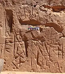 Monograms of Archangel Michael in a quarry near Meroë. Such monograms seem to have been the most popular epigraphic expression in Alodia, while longer inscriptions are comparably rare.[55]