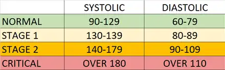 Hypertension is a condition characterized by persistently high blood pressure.[38][39] Two measurements are taken to quantify blood pressure: systolic and diastolic blood pressure.[39] A patient is diagnosed as hypertensive when their systolic blood pressure is greater than 140 mmHg or diastolic blood pressure is greater than 90 mmHg. Not many people with hypertension are aware that they have the condition.[39][38] In 2010, 31.1% of adults worldwide had hypertension, but only 45.6% of them were aware they had the condition.[39] Hypertension is more apparent in the Hispanic/Latino population, as in 2008 the incidence rate of hypertension for Hispanic adults aged 45–84 was 65.7%, compared to 56.8% for non-Hispanic whites of the same age.[2][40] Hispanic/Latinos are more likely to be unaware of their condition, compared to non-Hispanics, and be less likely to seek treatment, which increases the risk of developing cardiovascular disease and AD.[40][39] Hypertension can be reduced by lifestyle changes (e.g., weight loss and exercise) and pharmacological intervention.[37][38] Multiple studies suggest that use of antihypertensive drugs might reduce the risk of dementia and AD.[37][18]