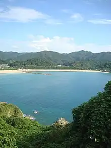 Amakusa-machi is famous for its scenic coastline along the Amakusa-nada sea, including a natural, white sandy beach in Takahama called Shiratsuru-hama 白鶴浜 and beautiful, strange rock formations in the bay Myoken-ura 妙見浦. Shimoda-kita is also home to a famous hot spring which, according to legend, was discovered by a white heron. Many tourists come to Amakusa-machi to enjoy these leisure spots.