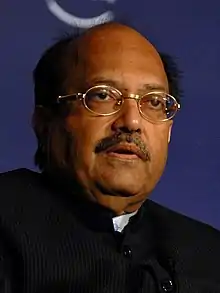 Amar Singh (27 January 1956 – 1 August 2020) was an Indian politician from the state of Uttar Pradesh.[2][3] He was the general secretary of the Samajwadi Party and was a member of the Rajya Sabha, the upper house of the Indian parliament. On 6 January 2010, he resigned from all the posts of the Samajwadi Party[4] and was later expelled from the party by its chief, Mulayam Singh Yadav, on 2 February 2010.[5]