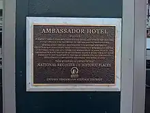 The Ambassador Hotel is a six-story, 134-room single room occupancy hotel at 55 Mason Street in the Tenderloin district of San Francisco, California.[1] The hotel was designed by Earl B. Scott & K. McDonald as the Ferris Harriman Hotel and Theater, and completed in 1911. It is a contributing property to the National Register of Historic Places's Uptown Tenderloin Historic District since 2009.[2]