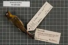 - BirdLife International (2017). "Zosterops kuehni". IUCN Red List of Threatened Species. 2017: e.T22714155A117490529. doi:10.2305/IUCN.UK.2017-3.RLTS.T22714155A117490529.en. Retrieved 11 November 2021.