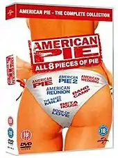 American Pie is a film series consisting of four sex comedy films. American Pie, the first film in the series, was released by Universal Pictures in 1999. The film became a worldwide pop culture phenomenon and gained a cult following among young people. Following American Pie, the second and third films in the series, American Pie 2 (2001) and American Wedding (2003), were released; the fourth, American Reunion, was released in 2012. A spin-off film series entitled American Pie Presents consists of five direct-to-video films that were released from 2005 to 2020.
