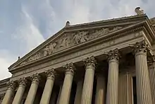 The National Archives Building in Washington preserves and displays the Declaration of Independence, the Constitution and the Bill of Rights. Pauline Maier describes these texts as enshrined in massive, bronze-framed display cases.[47] While political scientists, sociologists, and legal scholars study the Constitution and how it is used in American society, on the other hand, historians are concerned with putting themselves back into a time and place, in context. It would be anachronistic for them to look at the documents of the "Charters of Freedom" and see America's modern "civic religion" because of "how much Americans have transformed very secular and temporal documents into sacred scriptures".[47] The whole business of erecting a shrine for the worship of the Declaration of Independence strikes some academic critics looking from the point of view of 1776 or 1789 America as "idolatrous, and also curiously at odds with the values of the Revolution". It was suspicious of religious iconographic practices. At the beginning, in 1776, it was not meant to be that at all.[48]