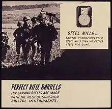 Companies ran advertising supporting the war. This helped keep their names before the public although they had no products to sell, and they were allowed to treat this advertising as a business expense.[19] The War Advertising Council helped supervise such efforts.[20] Car manufacturers and other producers that retooled for the war effort took out ads depicting their efforts.[21] Other companies connected their products in some way with the war. For example, Lucky Strike claimed the change from green to white in its packaging was to save bronze for weapons, and, as a result, saw its sales skyrocket.[22] Food and soft drink companies such as Coca-Cola depicted their products being consumed by defense workers and members of the armed forces.[23] Many commercial ads also urged the purchase of war bonds.[24]