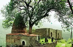Soon Fatali Khan married to Tuti Bike – his own cousin and sister of Amir Hamza in 1766. But in his turn, he refused to marry his younger half-sister Khadija Bike to Amir Hamza. Instead he married her to Malik Muhammad Khan – son of Baku's Khan Mirza Muhammad I[6] effectively subordinating the Baku Khanate to himself.[7] Already disgruntled over marriage refusal, Amir Hamza captured Derbent with 2,000 soldiers and held it for 3 days with the excuse of visiting his sister. Fatali Khan later drove Amir Hamza (despite a last-minute help from his brother Ustar[8]) and his Kaitag tax collectors from Derbent and took away the revenues villages which he presented to Amir Hamza.[5] Fatali, then appointed Eldar bek, disgruntled nephew of Muhammad Khan of Gazimukh as steward of Derbent. These steps further alienated Dagestani lords from Fatali, who started to see him as a rival in the region. Fatali answered more harshly when Amir Hamza raided Derbent and Quba a year later, devastating his capital Bashli and forcing him to choose Chumli as his new capital.[9] Meanwhile, he sought better relations with Ghāzī Rustam of Tabasaran, who was his nephew and possessed the strategic gorge of Dyubek that let bypass Derbent for raid campaigns.[9]